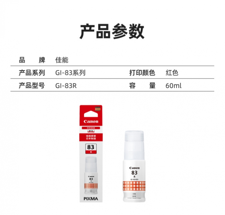 商品名称:佳能/Canon 墨水 GI-83R 3800页 适用于G680/G580 红色 (单位:支)