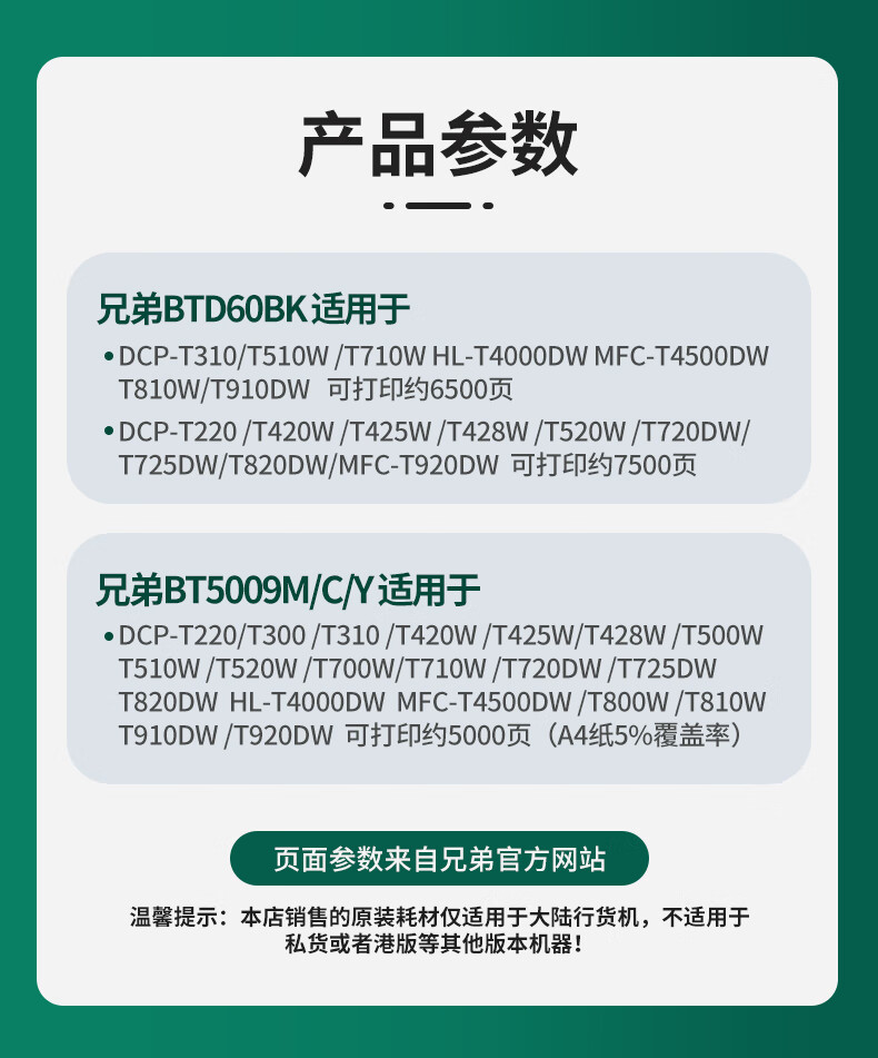 商品名称:兄弟BT-D60BK/BT5009墨水红色