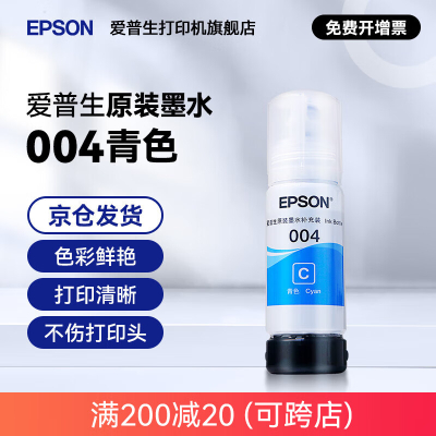 自营爱普生EPSON原装 004墨水 004C 【青/蓝色】